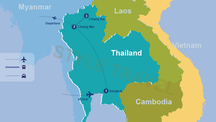 Visit Wat Phrathat Doi Suthep, the most sacred temple containing a holy relic of the Lord Buddha. The temple compound offers a great view of Chiang Mai and surrounding countryside. A visit to Meo village will be made then transfer to the airport for your own departure flight home.